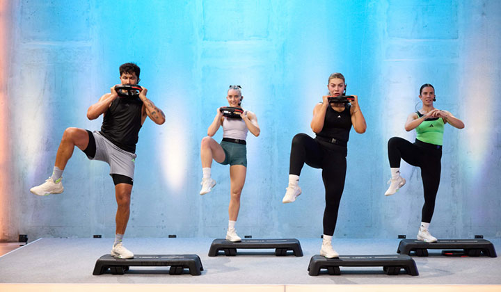 There are plenty of new moves to look forward to, including floor work in Track 5 that targets the triceps without push-ups – “which I know my members will be excited for!” laughs Nel. You’ll also see a deadlift–lunge combination and an offset squat, adding fresh challenges to the mix.