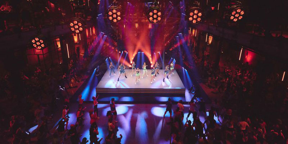 The soundtrack brings a party atmosphere to the tempo. Erin adds, “It’s like doing a workout at Coachella! We start with on-trend heavier sounds and progressively build into a rave at the end.”